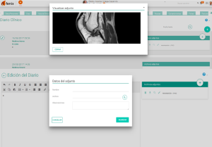 A la hora de realizar anotaciones en el diario clínico o de elaborar un informe médico, el facultativo puede adjuntar un archivo digital con una radiografía, una fotografía de la lesión, o cualquier otro tipo de imagen, en general.